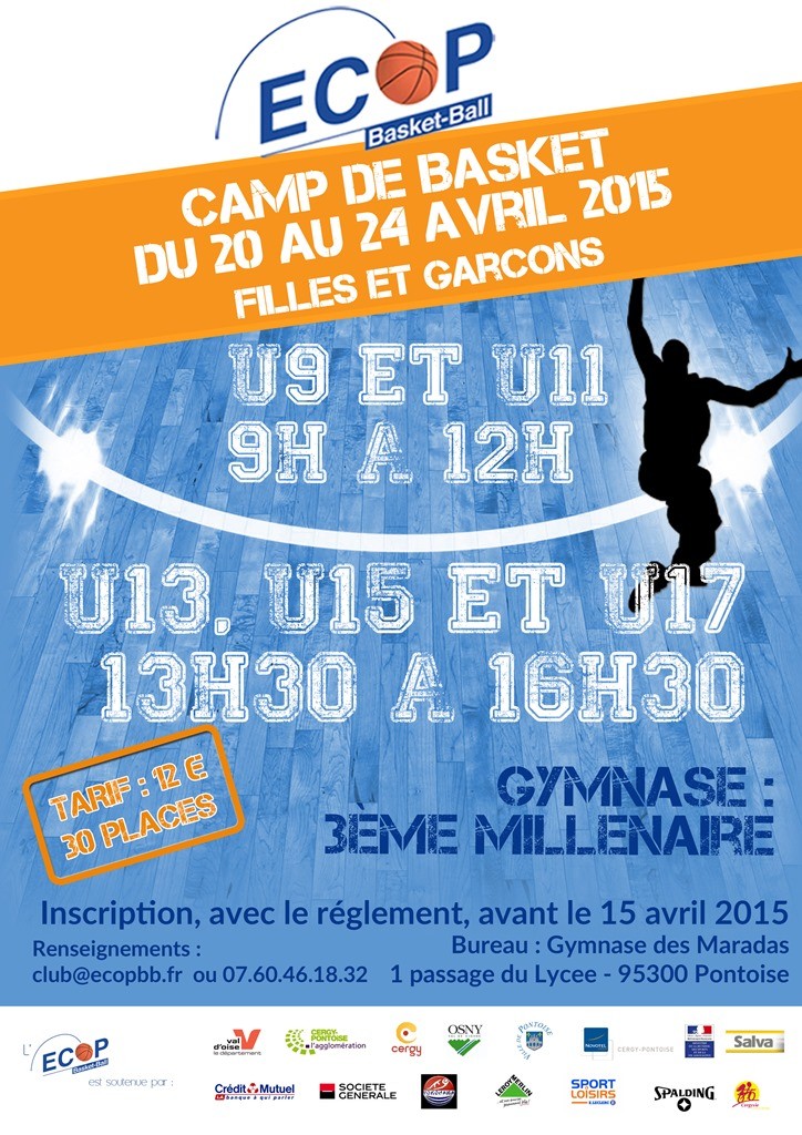 Pour les vacances de printemps l’ECOP Basket-ball organise un camp. ATTENTION seuls les 30 premiers pourront s’inscrire. Inscription : club@ecopbb.fr ou sms au 07.60.46.18.32.