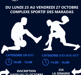 Le Cergy-Pontoise Basket Ball organise son stage de la Toussaint du 23 au 27 Octobre 2017 au Complexe Sportif des Maradas. Cette semaine, réservée aux licenciés du club, concerne les équipes de U9 à U17 (à l’exception des équipes U13-1, U15-1 & U17-1). Au programme, des ateliers et des oppositions qui seront organisés et encadrés par les entraîneurs du CPBB. Pour vous inscrire, il suffit de remplir la Fiche Inscription STAGE DE LA TOUSSAINT 2017 ainsi que le règlement de l’inscription (25€ la semaine). Pour toutes informations complémentaires, nous vous invitons à envoyer un mail à l’adresse nikolas.diot@cergypontoisebb.fr.