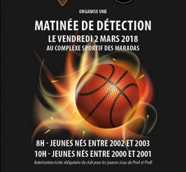 Le Mans Sarthe Basket organise ce vendredi aux Maradas une détection exceptionnelle en partenariat avec les Spartiates. Sont conviés à cet événement les jeunes nés entre 2000 et 2003 avec au programme : 8h00 : Détection jeunes nés en 2002 et 2003 10h00 : Détection jeunes nés entre 2001 et 2002 Il est obligatoire de porter des chaussures propres lors de la détection. Pour les jeunes issus de Centre de Formation de club évoluant en Pro B et Pro A, une autorisation écrite sera demandée.